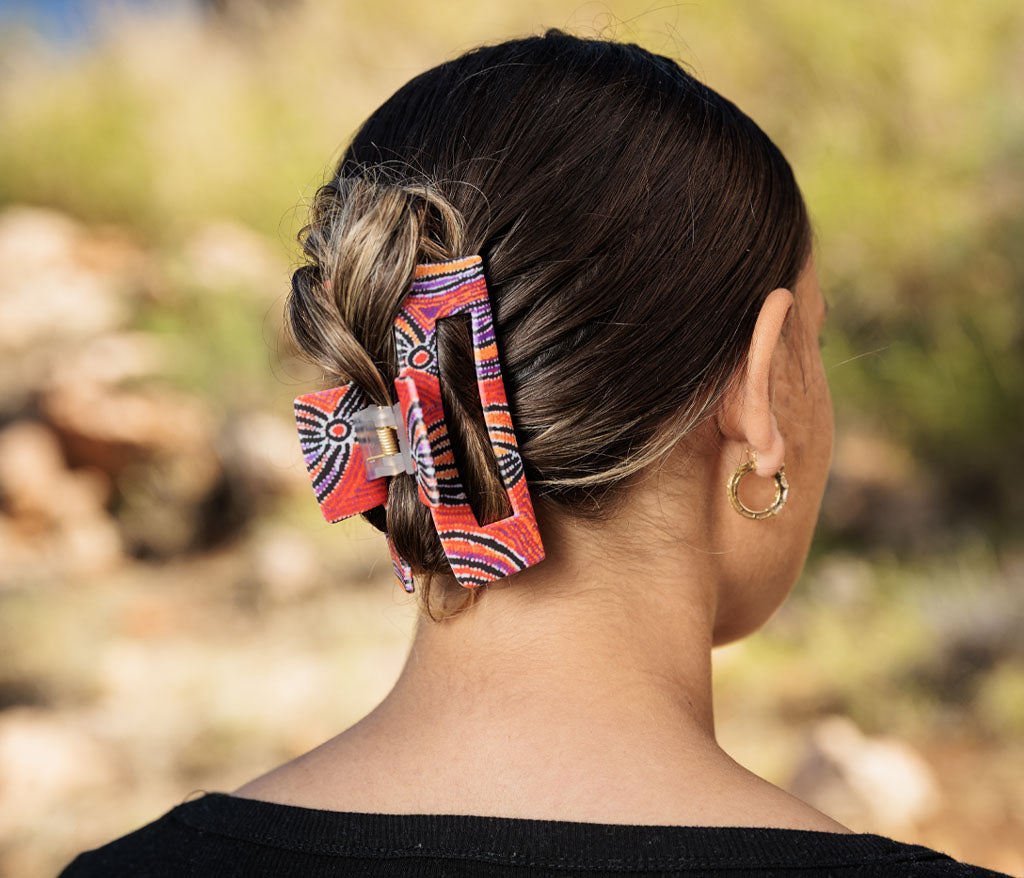 Royalties from this product directly benefit the artists. Add a fun twist to your hair game with our new Hair Claws featuring artworks from Warlukurlangu Artists! These stylish clips hold...