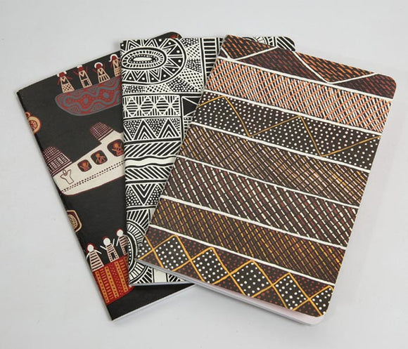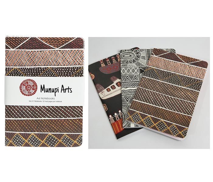 Royalties from this product directly benefit the artist. Set of 3, A6 Notebooks featuring Artwork from Munupi Arts & Craft Association (Tiwi Islands). Notebooks are packaged as a set and are a great aussie gift...