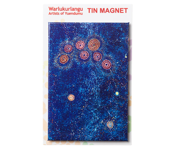 Magnetic Bookmarks.Based on artwork from Artists of Yuendumu. Features information about the artist and artwork.Royalties from this product directly benefit the artist.