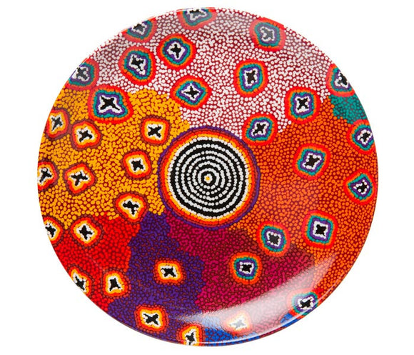 Royalties from this product directly benefit the artist. 7.5" Fine Bone China Plate.Perfect size for entertaining or even displaying on the wall!Based on artwork by Judy Napangardi Watson from Warlukurlangu...