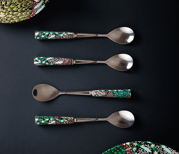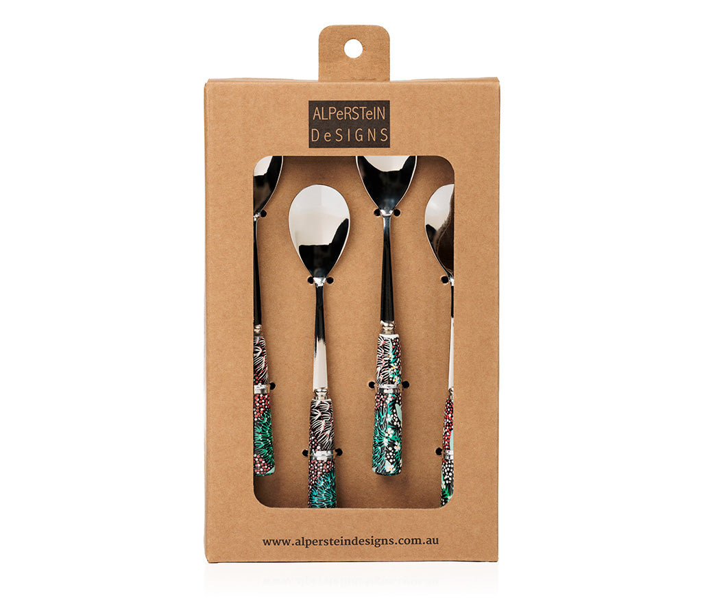 Royalties from this product directly benefit the artist. Includes 4 x matching teaspoonsPorcelain handles featuring decal artworkSpoon dimensions: 14.5cm x 2.5cmBox dimensions: 12cm x 20cm x 3cm Based on artwork...