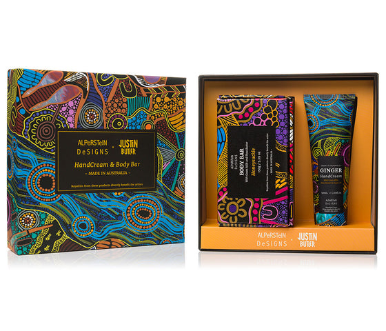 Royalties from this product directly benefit the artist. Indulge your senses with Australian made handcream and lip balm featuring Aboriginal artwork by Theo Hudson from Warlukurlangu Artists in Central Australia....