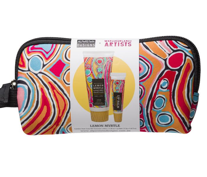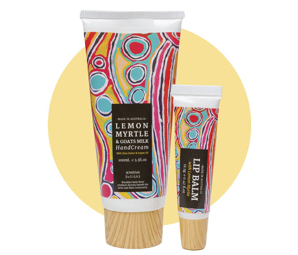 Royalties from this product directly benefit the artist. Indulge your senses with Australian made handcream and lip balm featuring Aboriginal artwork by Murdie Morris from Warlukurlangu Artists in Central Australia....
