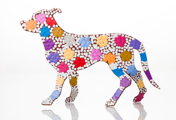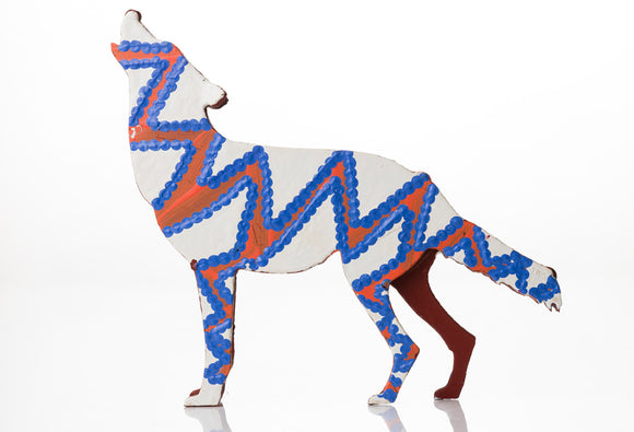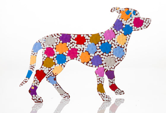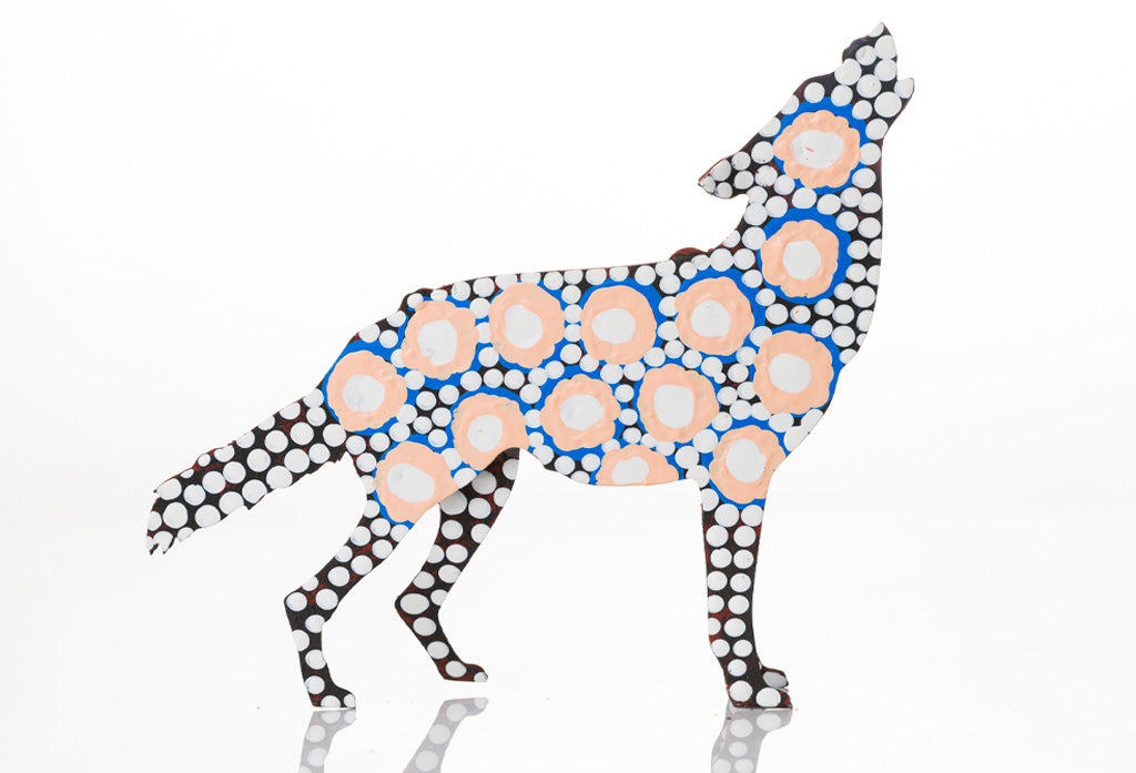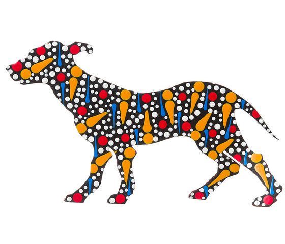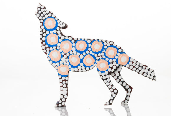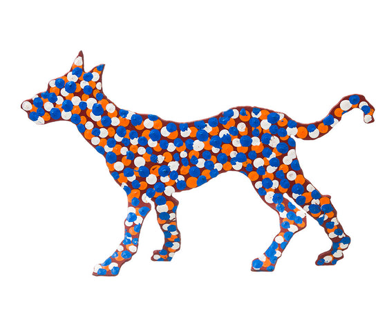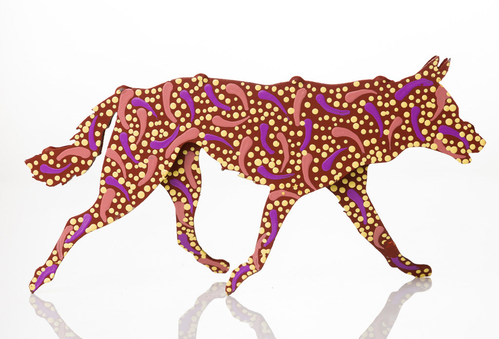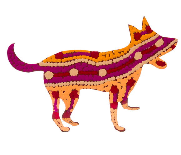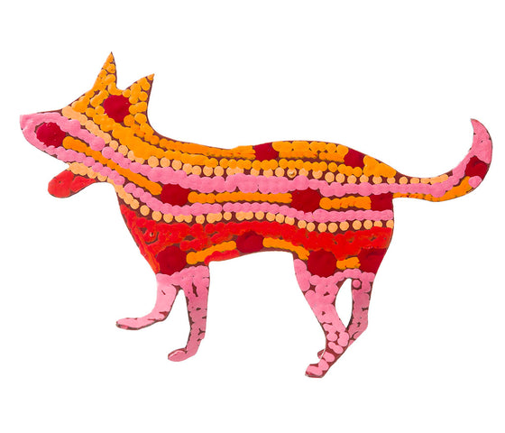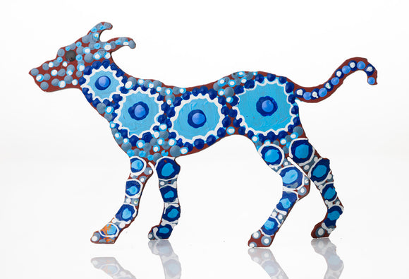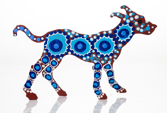 Enjoy your very own piece of original, hand painted artwork. Freestanding, each one of these metal dogs, represents a real animal from the Yuendumu region and are made in collaboration with...