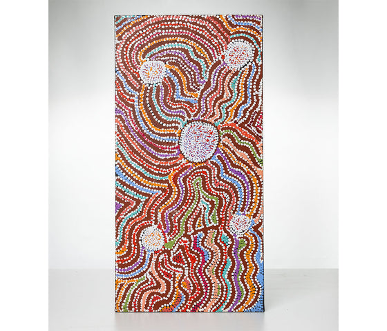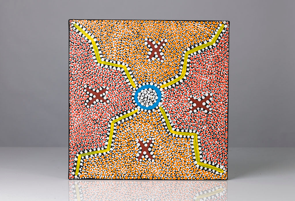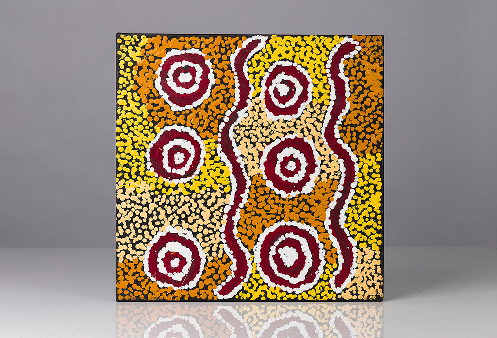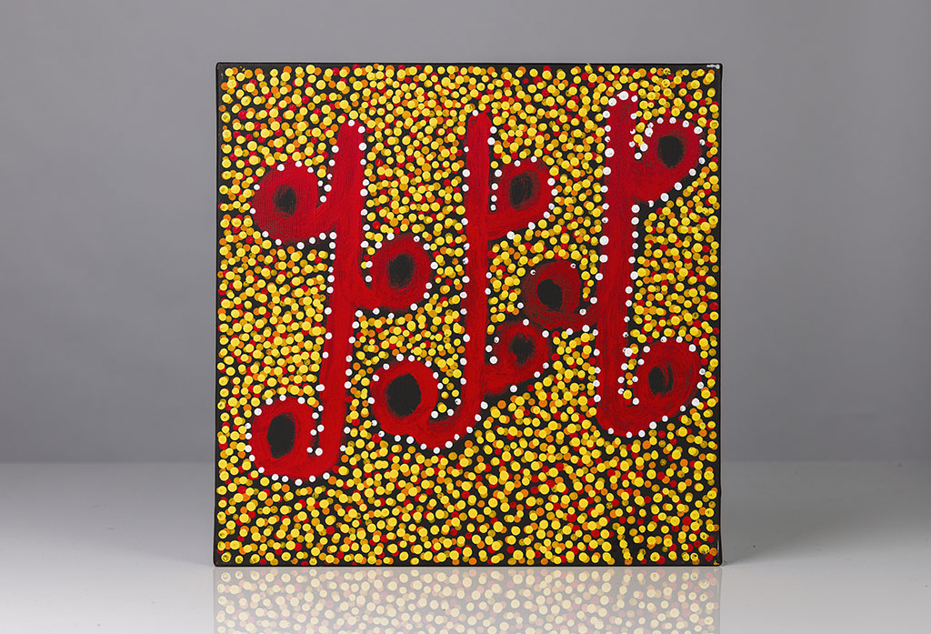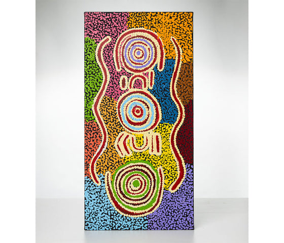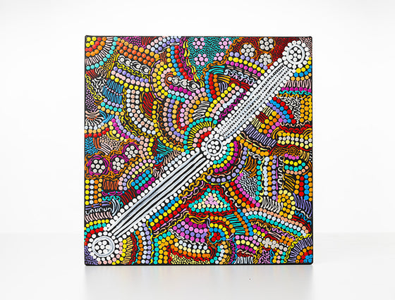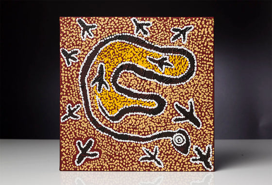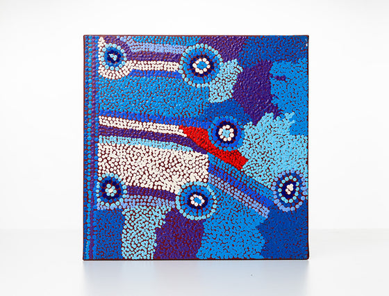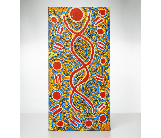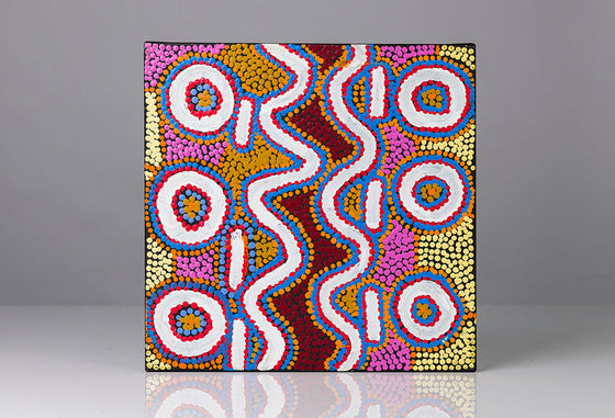 Enjoy your very own piece of original, hand painted artwork. Freestanding, each one of these metal dogs, represents a real animal from the Yuendumu region and are made in collaboration with...