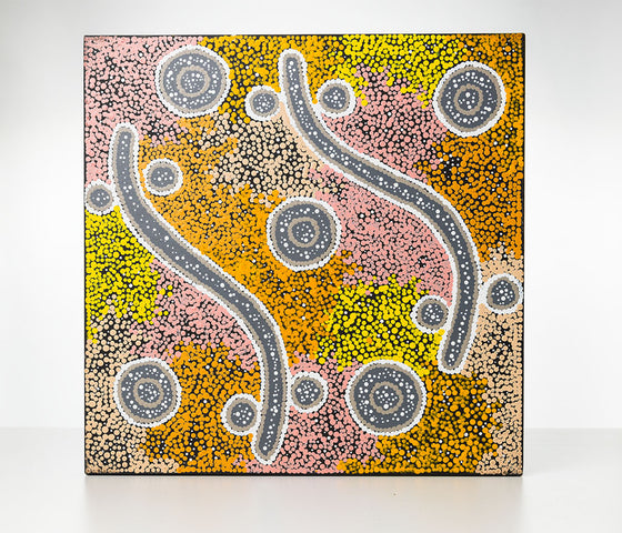 Artist: Marcia Nangala MartinArtwork: Patterns of the Landscape around YuendumuCatalogue Number: 3888/22Size: 40cm x 40cmAcrylic on canvas - prestretched.Ready to hangArtworks include a stamped signed Certificate of Authenticity from Warlukurlangu...