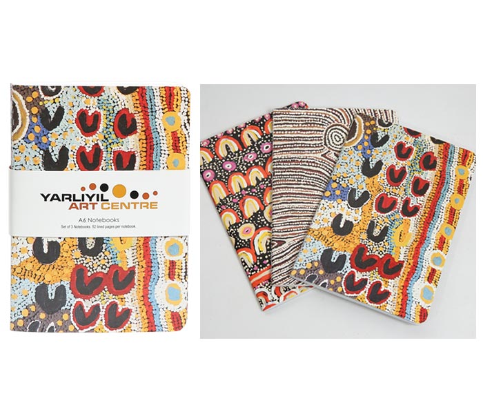 Royalties from this product directly benefit the artist. Set of 3, A6 Notebooks featuring Artwork from Yarliyil Art Centre (Kimberley Western Australia). Notebooks are packaged as a set and are a great aussie gift...
