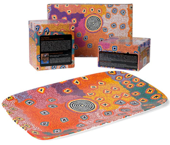 Royalties from this product directly benefit the artist. 100% Melamine Salad ServersReverse side: No print (White).Dishwasher Safe.Dimensions: 28cm x 8cm Based on artwork by Judy Napangardi Watson.Packaged with information about the...