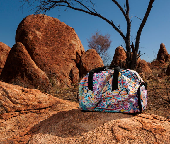 Royalties from this product directly benefit the artist. Be cooler for longer with your very own Aboriginal art insulated lunch tote. Insulated lunch totes have zip access at the top...