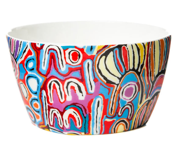 Royalties from this product directly benefit the artist. Fine Bone China Nut BowlDimensions: Height: 6.5cm | Diameter: 11.5cmDishwasher SafeMicrowave SafeBased on artwork by Judy Napangardi Watson from Warlukurlangu Artists of Yuendumu,...