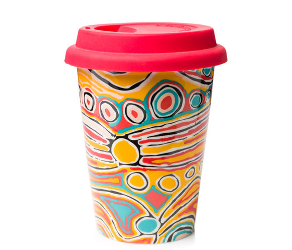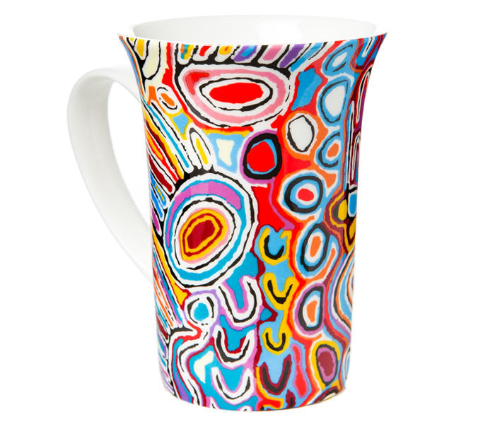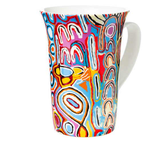 Royalties from this product directly benefit the artist. Fine Bone China MugDishwasher SafeMicrowave SafeMug Height - 12.5cmBased on artwork by Judy Napangardi Watson from Warlukurlangu Artists of Yuendumu, Australia.Presented in a...