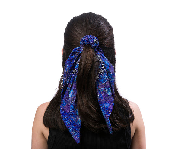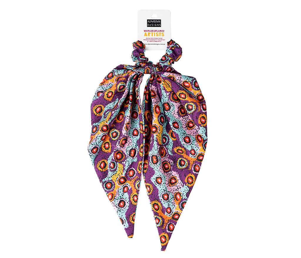 Royalties from this product directly benefit the artist. Take your hair game to the next level with these fun hair scrunchies with tails featuring Aboriginal artwork from Warlukurlangu Artists....