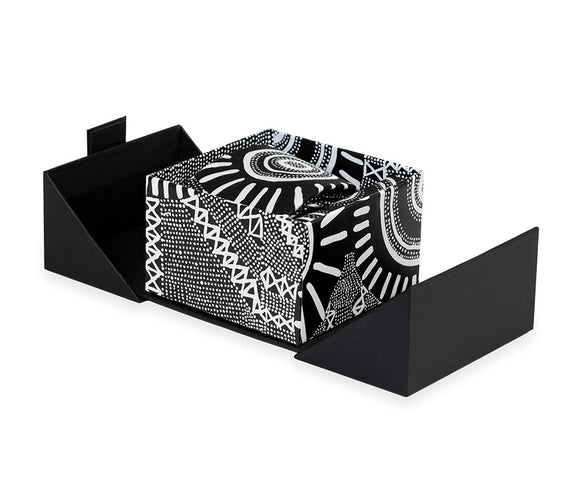 Royalties from this product directly benefit the artist. Linen ScarfScarf size: 120cm x 120cmMade in AustraliaGift BoxedBased on artwork by Irene Mungatopi from Munupi Arts & Crafts Association in the Tiwi Islands.Includes information...