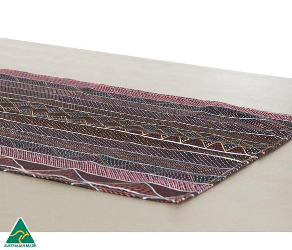 Royalties from this product directly benefit the artist. Australian Made Table Runner featuring artwork by Jacinta Lorenzo from Munupi Arts & Craft Association (Tiwi Islands). Table runners are made from Polyester/Cotton so do not wrinkle...