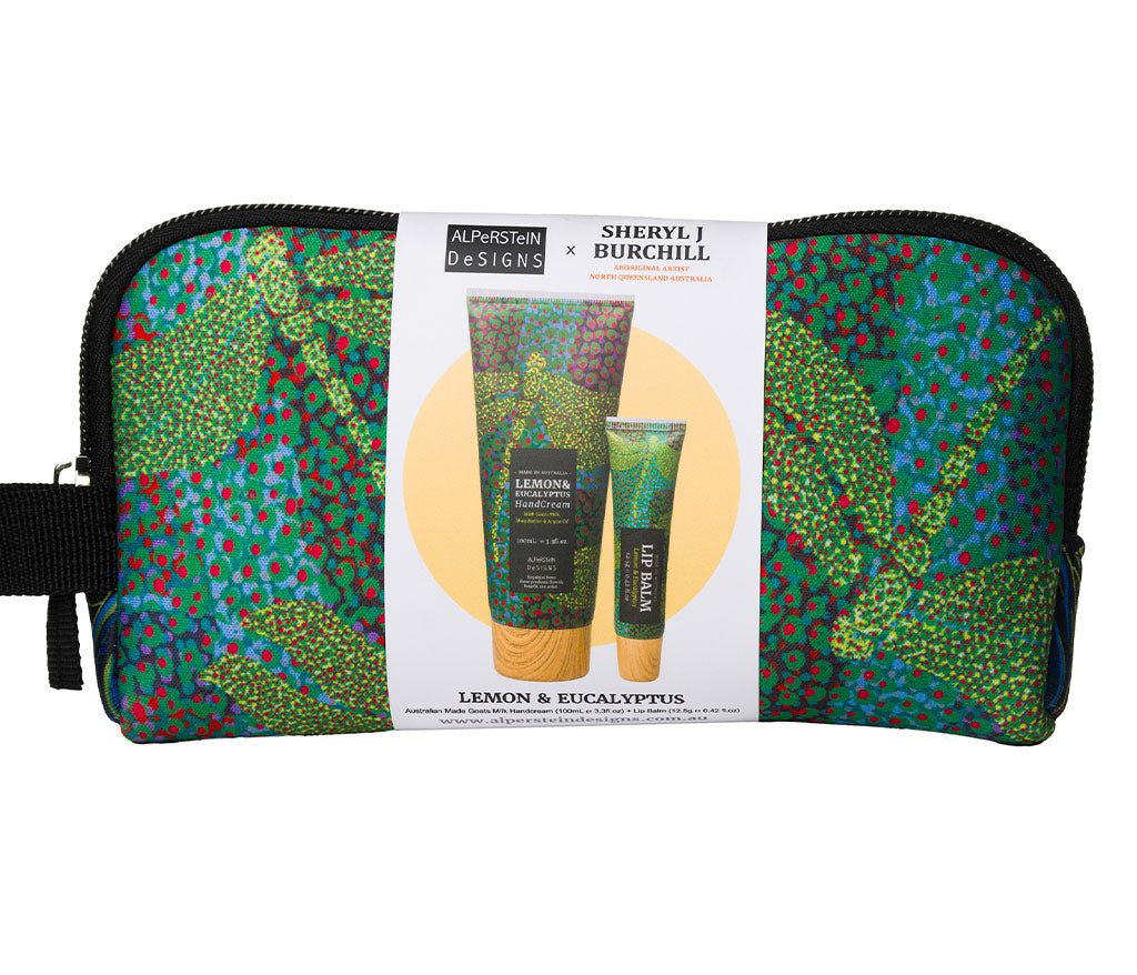 Indulge your senses with Australian made handcream and lip balm featuring Aboriginal artwork by Aboriginal artist, Sheryl J Burchill from North Queensland, Australia. Gift Packed in a matching neoprene case this is the perfect gift to give or indulge in yourself.
