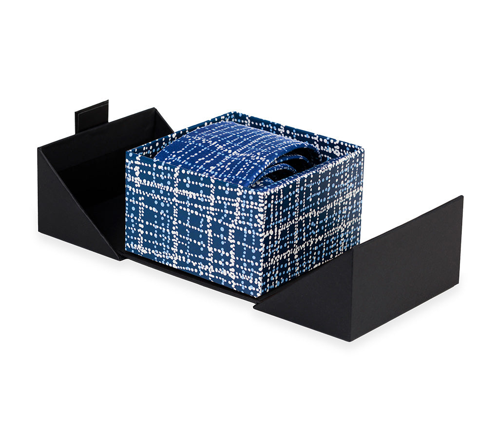 The Dorothy Napangardi Silk Tie Set combines elegance and cultural heritage with a 100% silk tie and matching pocket square featuring striking Aboriginal art. Gift boxed for a polished presentation, this set adds a refined and meaningful accent to any formal look, making it an exceptional choice for yourself or as a thoughtful gift.