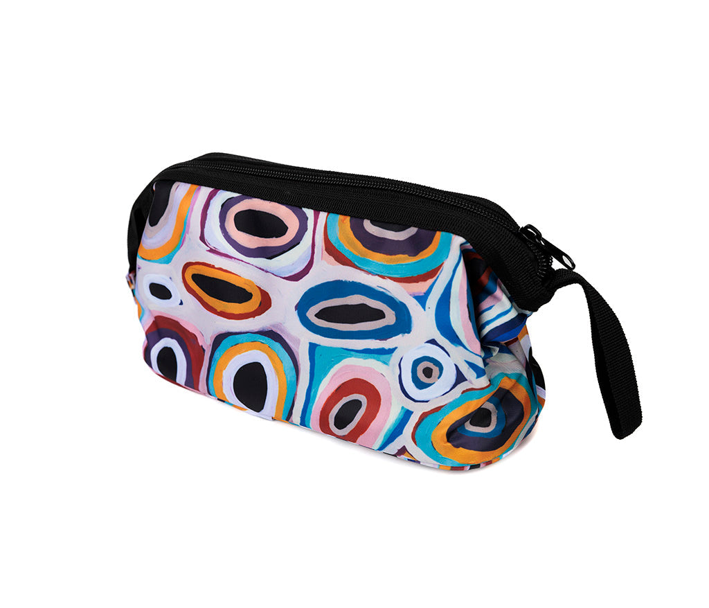 Keep your essential cosmetics together when you are on the move. Featuring artwork, reproduced under license by Gladys Kuru Bidu, courtesy Martumili Artists.