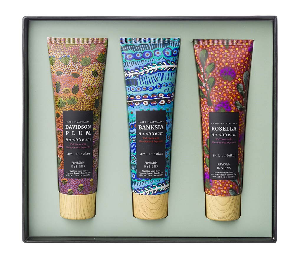 Treat your hands to a luxurious trio of nourishing, Australian-made hand creams! Our Hand cream Trio includes Rosella, Davidson Plum and Banksia is proudly packaged in a beautiful gift box, – each as magical as the next! So whether you're gifting someone special, or gifting yourself, get your hands on this dreamy cream combo!