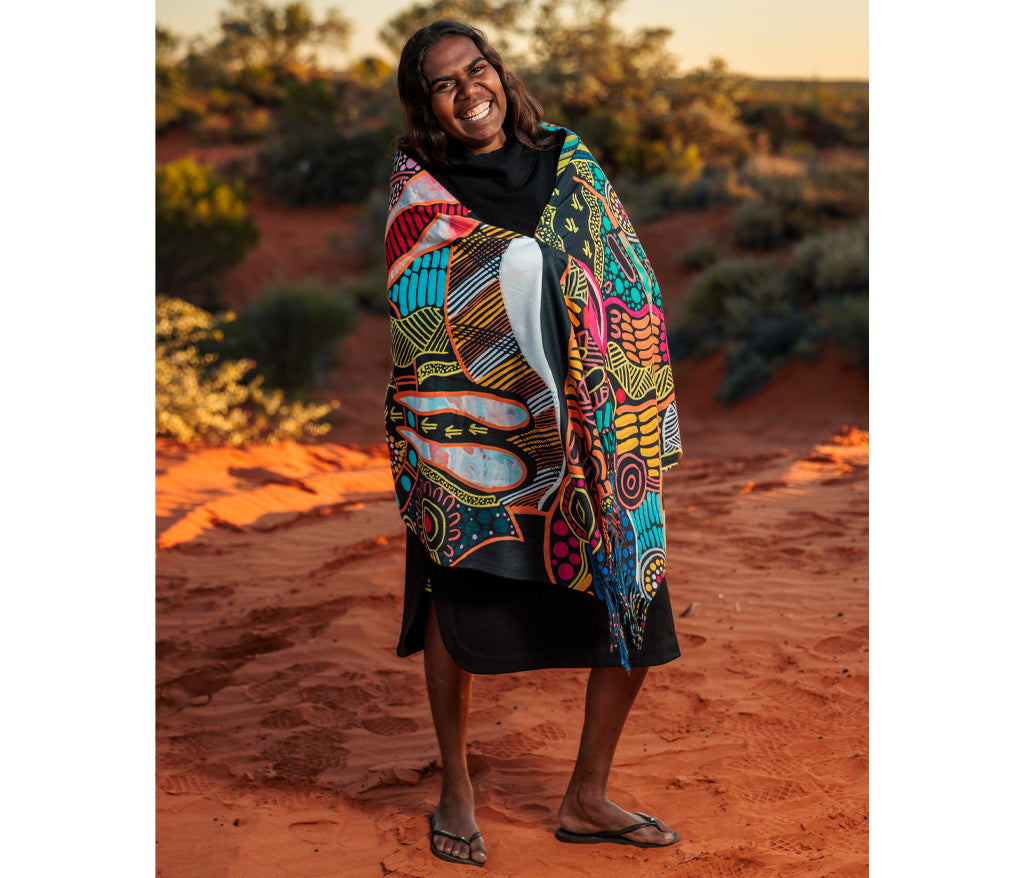 "My art is influenced by both my Kalkadoon and Bandjin stories and styles. My work involves embedding Aboriginal symbols, colours, contrasts, vantage points, and abstract designs to tell the stories of my people."