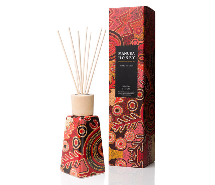 Manuka Honey Fragrance Reed Diffuser Set. Infuse the air with a signature aroma of Manuka Honey, Sandalwood and Jasmine with this luxury Fragrance Reed Diffuser. Fragrance oils are poured in Australia using only the finest fragrances and ingredients.